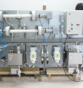 Besonderheiten des Aufbaus: Alle wichtigen Teile aus PVDF. Einsatz von Saphirglas und Dichtungen aus Kalrez.